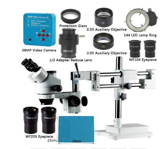 1.3.5X 90X 180X Simul-Focal Double Boom Stand Trinocular Stereo Zoom Microscope 38MP 2K High resolution Camera 144 LED Light Microscope..
