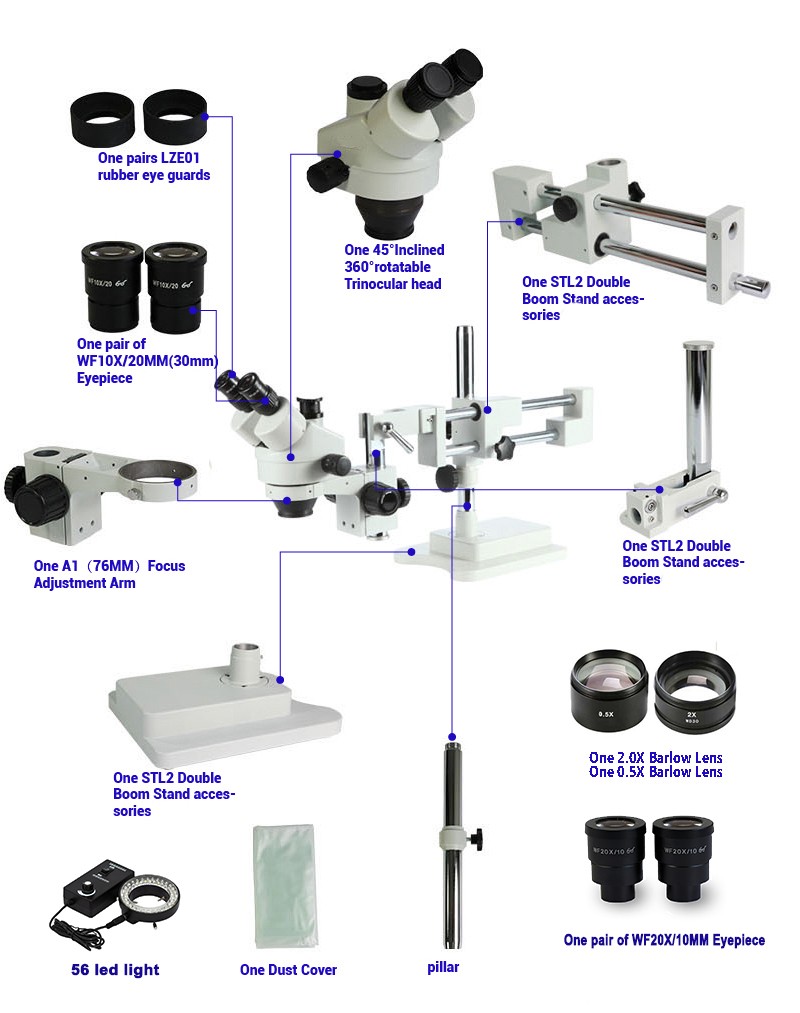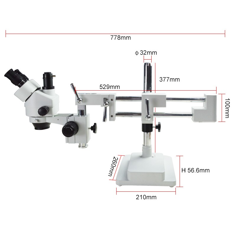 This is trinocular 3.5X-180X zoom stereo microscope , it is simul-Focal Optical System Allows Simultaneous Observation Through Both the Eyepieces and the Trinocular Port Have well-focused, clear images on your PC or video Screen and through the microscope eyepieces at the same time. The 45 inclined 360 swiveling trinocular head and high-eye point design ensures an easy observation, especially for eyeglass wearers. The double-arm boom stand is equipped with a versatile ball-bearing design, which allows users to make horizontal adjustments at the touch of a finger.