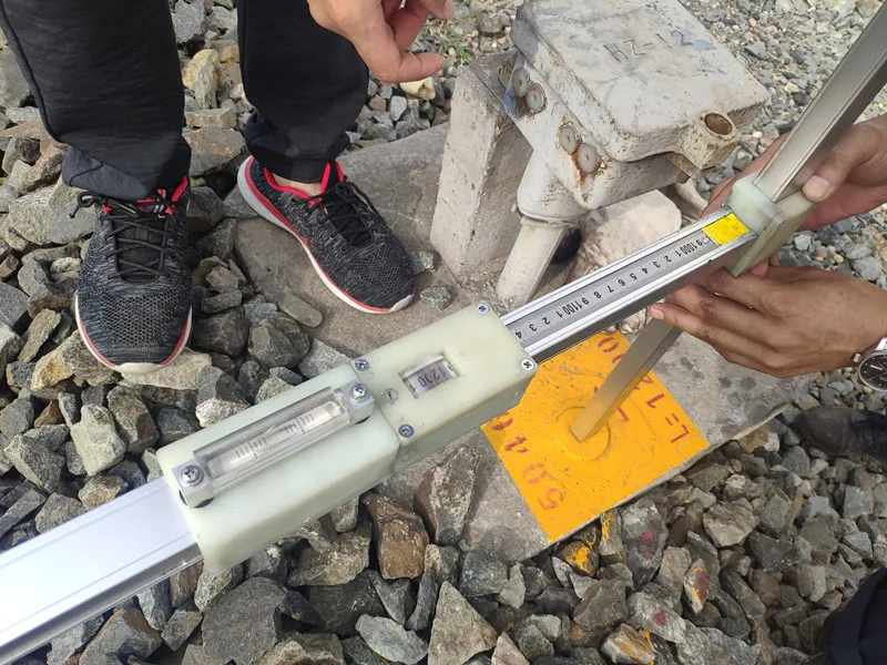 L-shaped track ruler is a special measuring tool used for measuring the distance between the inner side of railway track and the base mark and the height between the plane on the rail and the base mark.