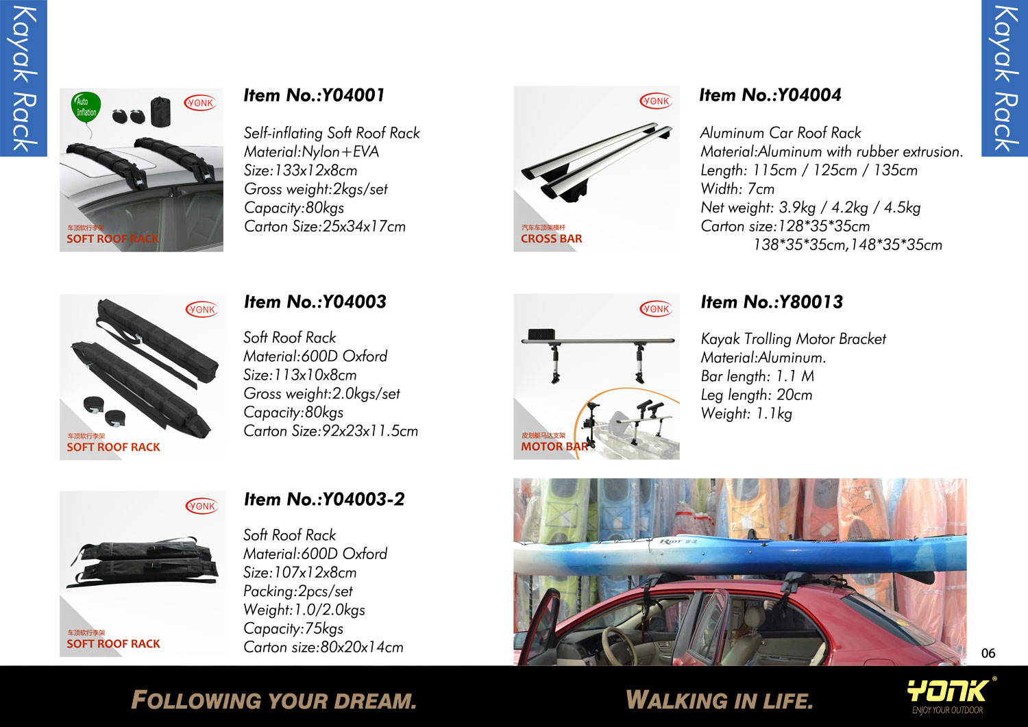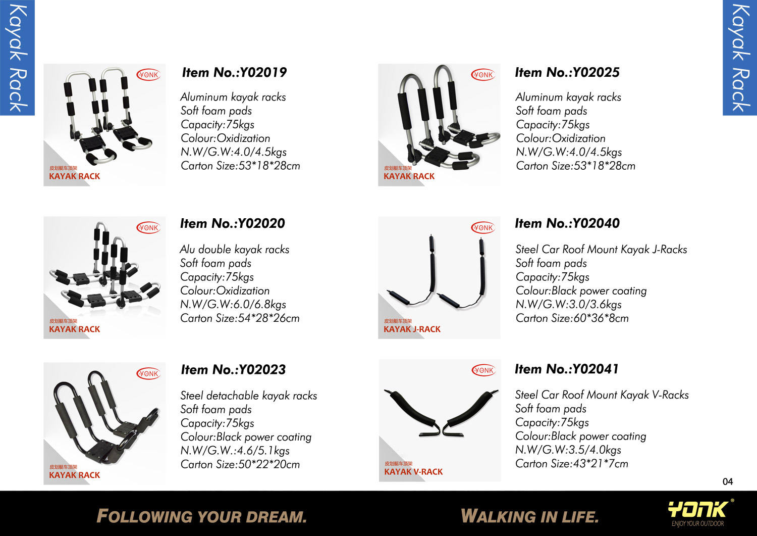Yonk is the experienced manufacturer of Roof Rack, Bike Rack, Ski Rack, Kayak/SUP Rack, Kayak/SUP Cart and other Outdoor Accessories. We provide both OE parts and After-market accessory. Our business concept is based on honesty and responsibility to provide our customer top quality products at reasonable price levels with prompt delivery service.