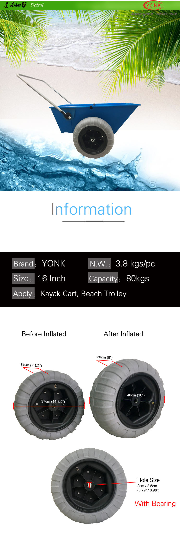 | Alex hole size: | 2.0cm/2.54cm/OEM hole size; | Product name: | 16 inch beach wheels with bearing caster wheel for trolley cart wagons; |