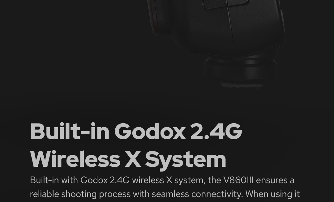 Built-in Godox 2.4G wireless X system, providing all-in-one function, the transmission distance is 100 meters longer.