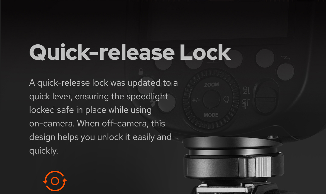 More other functions: GN60 (m ISO 100@200mm) and 22-speed power output (1/1-1/128); support TTL/M/Multi/S1/S2;