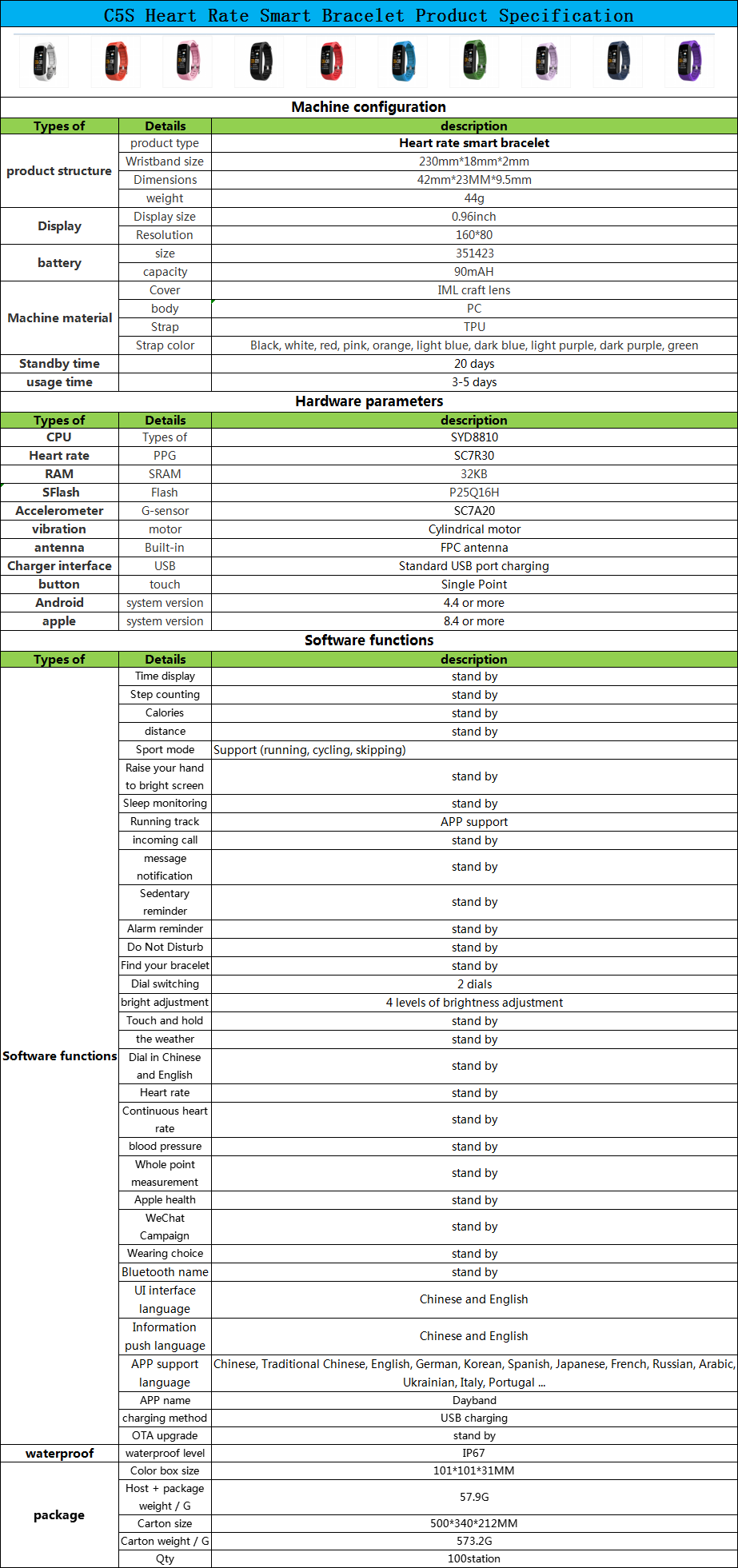 | Display color: | color; | product name: | C5S smart bracelet; |