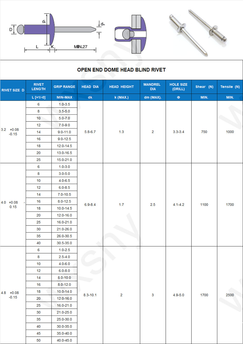 | standard: | DIN7337; | diameter: | 2.4, 3.0, 3.2, 4.0, 4.8, 5.0, 6.0, 6.4; |