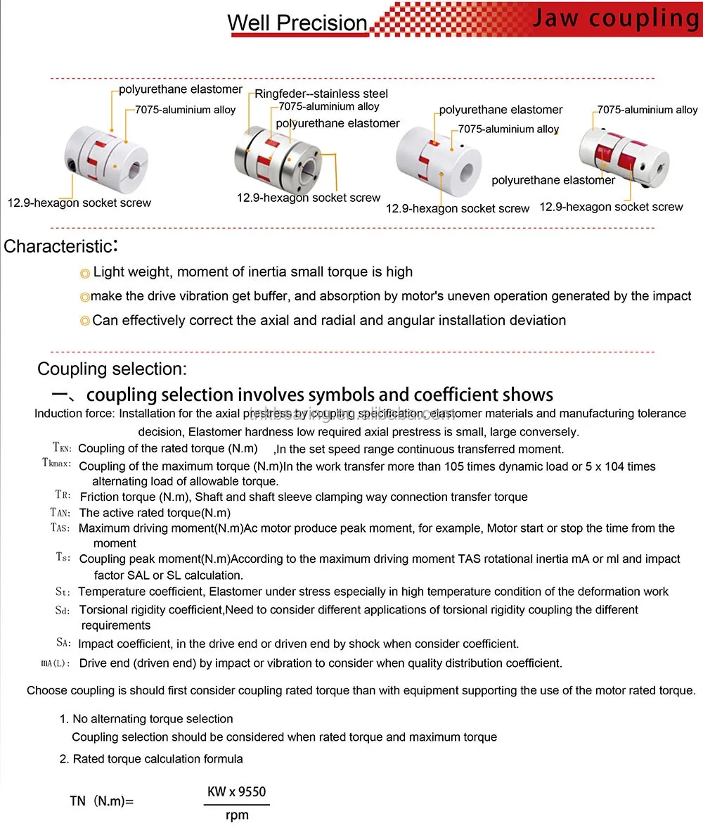 | Product name: | Zero backlash Germany Quality Shaft Flexible Jaw Lovejoy KTR Coupling; | Material: | Aluminium; |