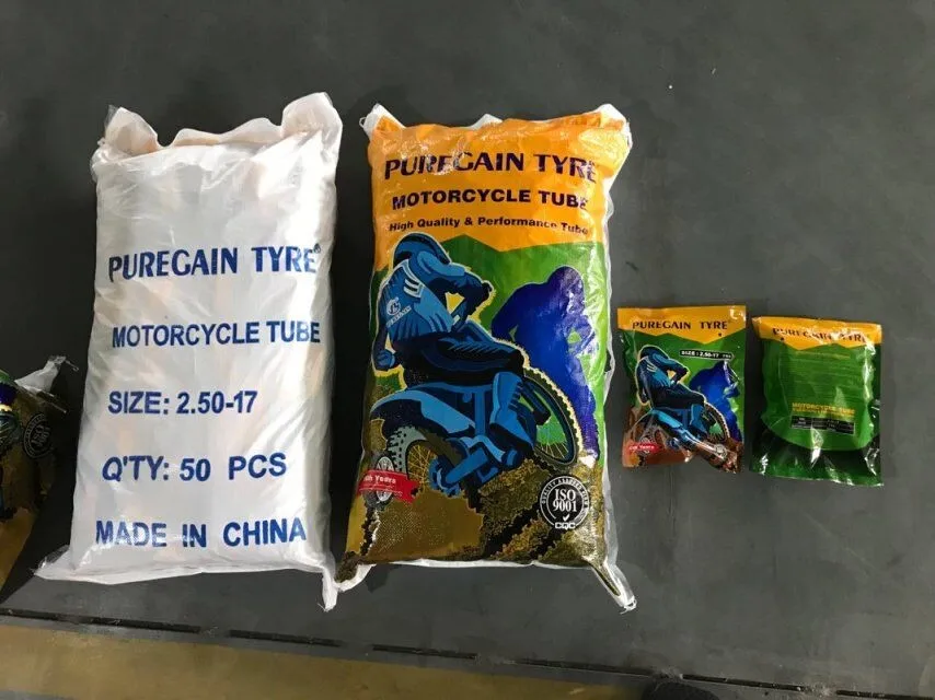 | Supply Ability: | 8000 Piece/Pieces per Day; | Packaging Detail: | Motorcycle tyre tube packing:1pc/color bag,50pcs/woven bag;1pc/box,50pcs/carton or According to customer's requirment Motorcycle Tyre Packaging :1pc/color wrapping paper,20-25pcs/bundle;for tubeless tyre,pack one by one;or as per your request.; |
