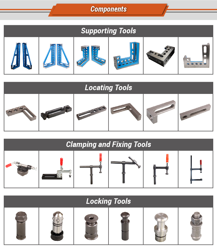 ·During assembly or welding, almost all workpieces can be precisely fixed at certain points or faces with spacers, adapters, fasteners and support pieces.