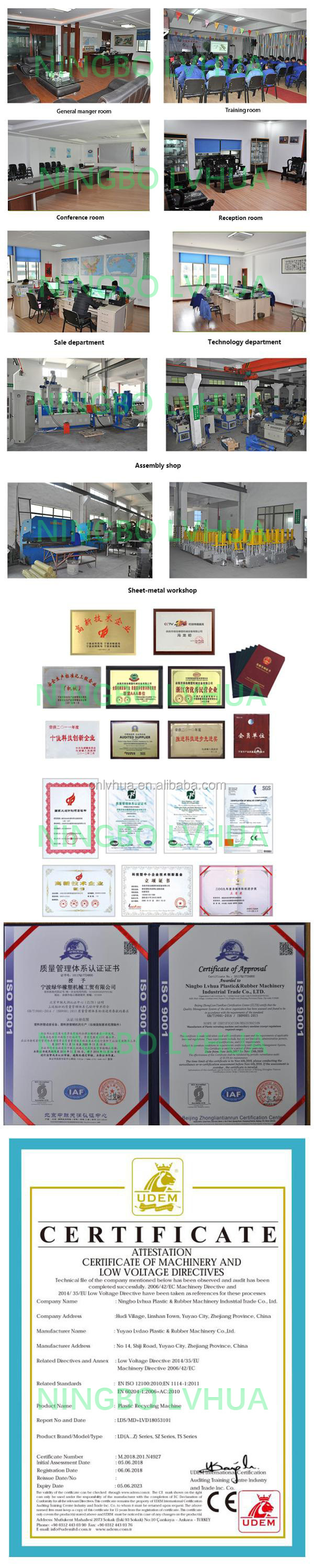 Our equipment now has a number of invention patents. passISO9001:2008 certification. Plastic granulation unit has passed CEAuthentication security. In 2007 our LDA series participated in the National Torch Program project.In 2008, our company was rated as a high-tech enterprise in Ningbo. andIn 2009, the company undertook the national innovation fund project.