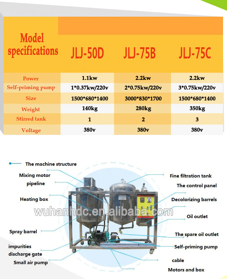 | HDC-JLJ50D Small Refinery | 500 kg/24 hours | 1 | 5KW | degumming bleach |