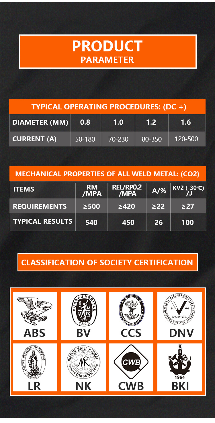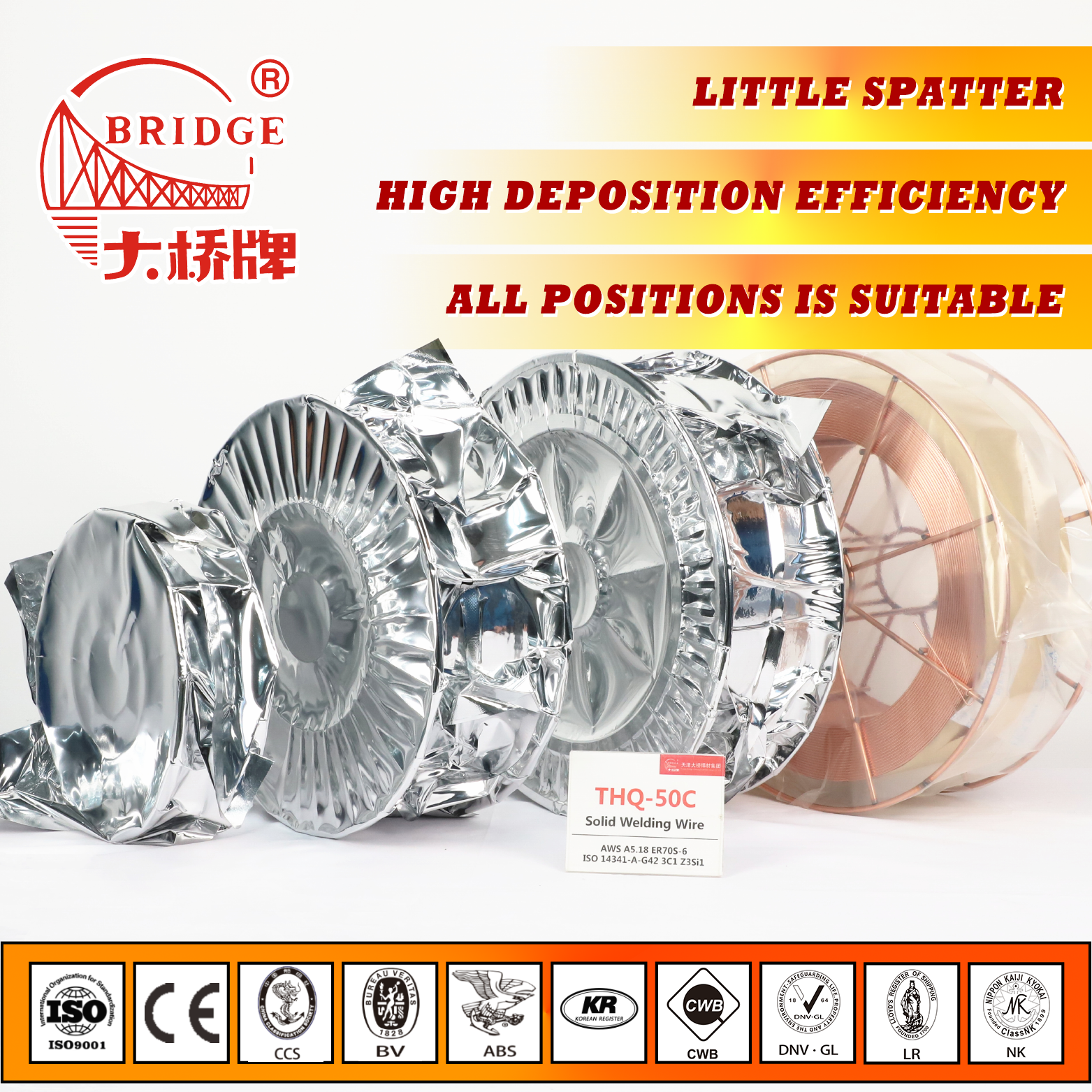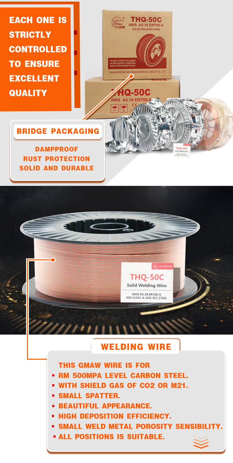 Steel wire THQ-50C is 500MPa grade carbon steel wire. Use CO2 or 80%Ar+20%CO2 gas shielded arc welding. welding