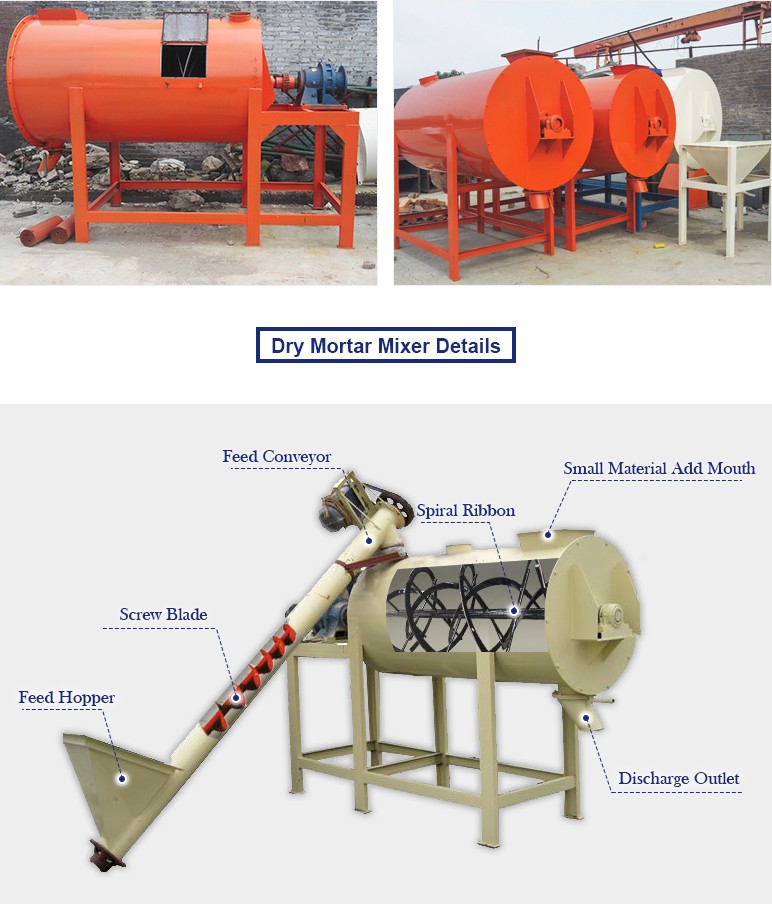Dry powder mortar mixer, also known as ready-mixed mortar, is made in the factory by precise batching and uniform mixing. It can be used directly by adding water on the construction site. Although different additives are added, it has different properties. The demand for dry mortar is rapidly increasing due to its outstanding advantages compared to the mortar produced on site.