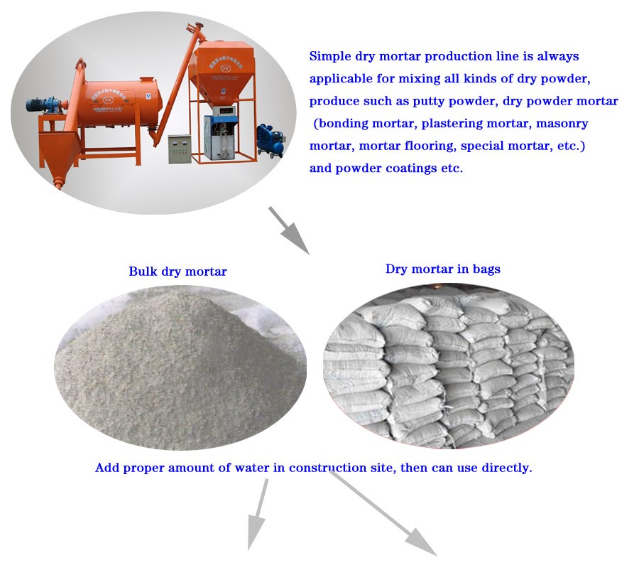 It is suitable for mixing various dry materials such as putty powder, dry powder mortar (bonding mortar, plastering mortar, masonry mortar, floor mortar, special mortar, etc.), powder coating and so on.