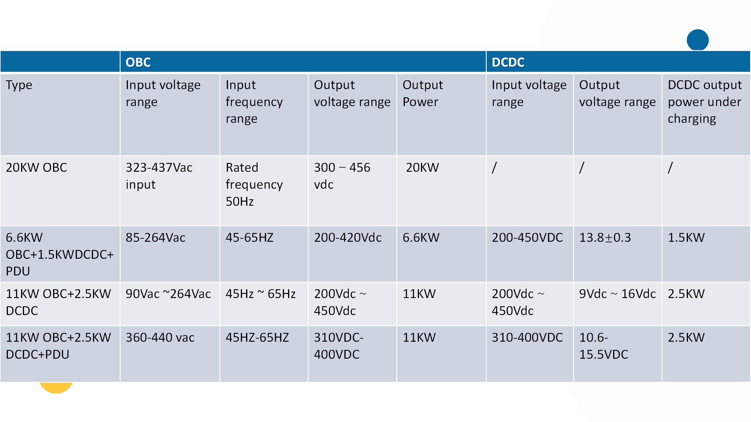 | On-board charger AC input (three-phase): | 360VAC-440VAC | product name: | 11kw OBC+2.5kw DCDC+PDU |