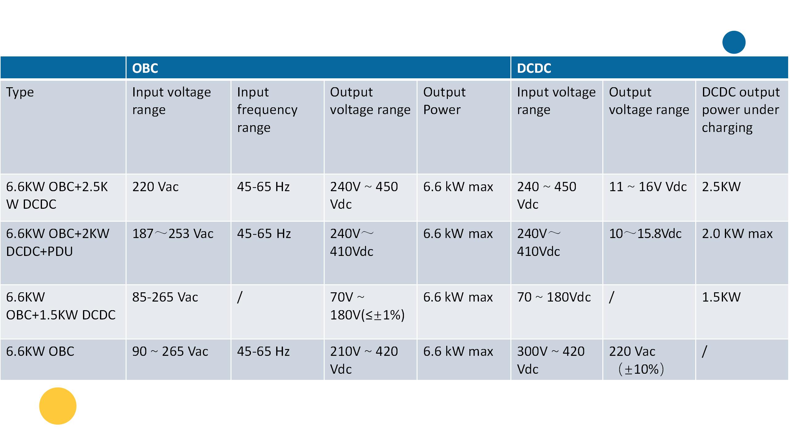 | DCDC output power: | 2.5kW | Car charger AC input (single phase): | 200VAC-260VAC |