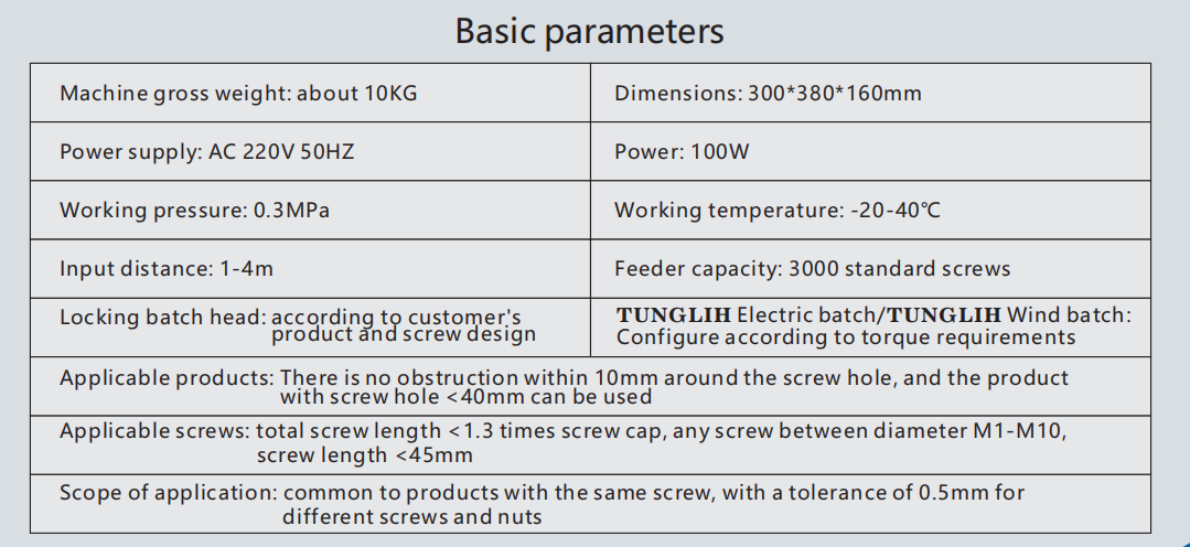 1. Automatic screw feeding, sorting and tightening of various shapes of screws. One-handed operation.
