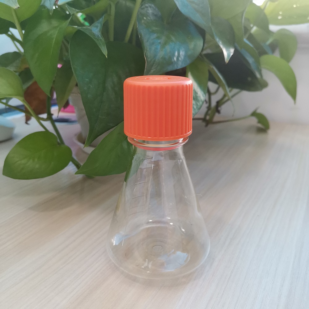 Using PETG/PE disposable flat-bottom conical flasks saves preparation time and avoids the risk of contamination. It is ideal for cell suspension culture, media preparation, mixing and storage. High-transparency PETG/PE is strong and not easy to break, which can reduce personal safety hazards. Ideal for shake culture applications.