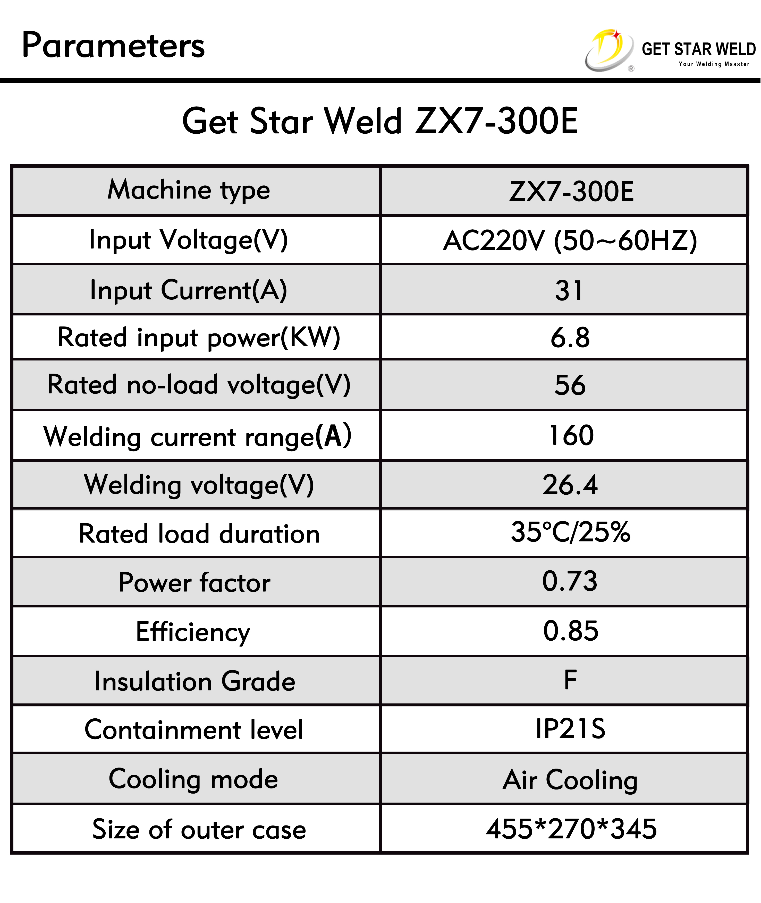 GET STAR WELD arc 300 amp mma portable AC welder price ZX7-300E