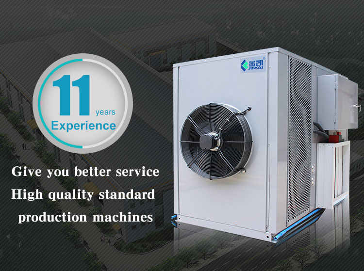KINKAI brand heat pump dryer actually applies heat pump technology to drying. The heat pump dryer uses the inverse Carnot principle to absorb outdoor hot air and transport it to the drying room to achieve the temperature of the drying room, and cooperate with related equipment to achieve material drying. The main components of the heat pump dryer include a compressor, a heat exchanger, a throttle, a heat absorber-compressor unit, etc. to form a circulation system. It circulates in the system under the action of the refrigerant in the compressor. It makes the gas in the compressor pressurized and heated (the temperature can reach 100 ℃), and the heat is released into the machine -- the high temperature heating drying room air, when it runs outside the machine, it is cooled and converted into flowing liquid, and the liquid is quickly heated and evaporated again. At the same time, the temperature drops to -30℃, 20℃, and the air around the heat sink will continue to transfer heat to the refrigerant. The refrigerant circulation continuously realizes the transfer of heat from the air to the drying room and the air in the room.