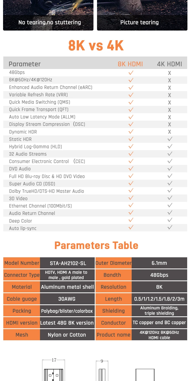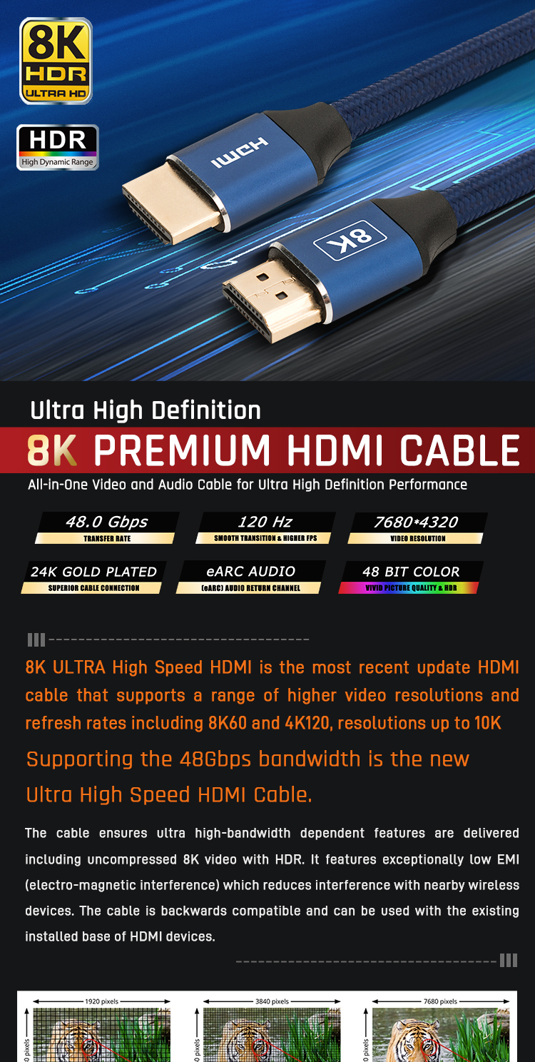 | Key words: | 4K@120Hz 8K@60Hz HDMI cable | conductor: | TC Copper and BC Copper |