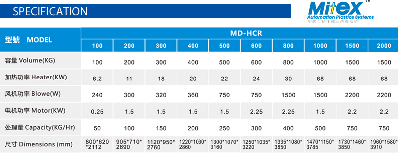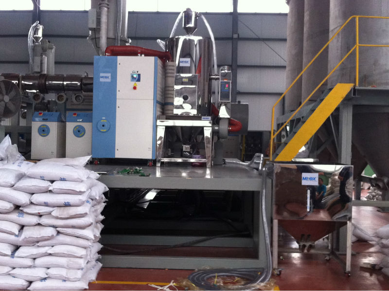 The MCR closed-loop crystallizer is used for continuous crystallization of uncrystallized PET regrind or pellets, and the processed material can be directly dried and dehumidified. The crystallized material can be transported to storage bin or drying hopper.