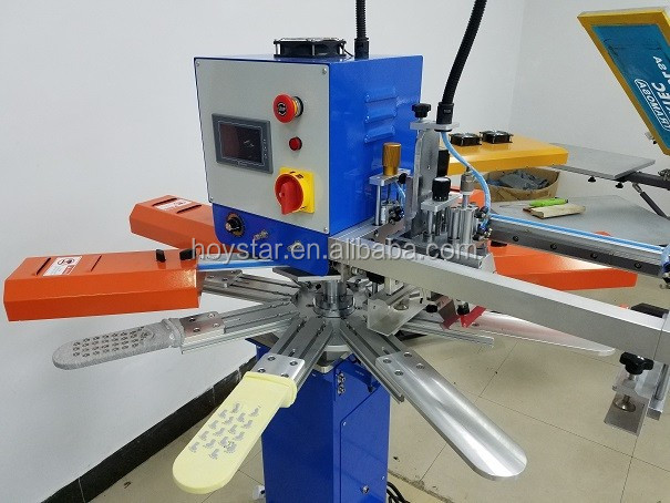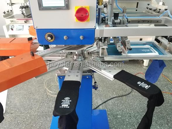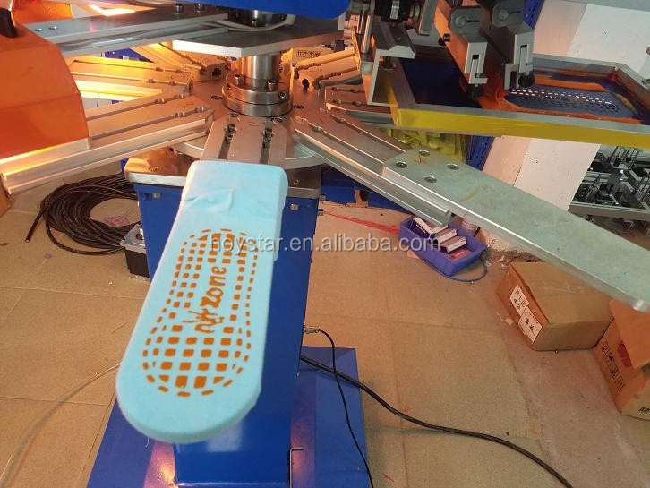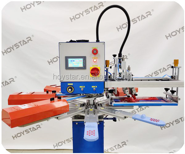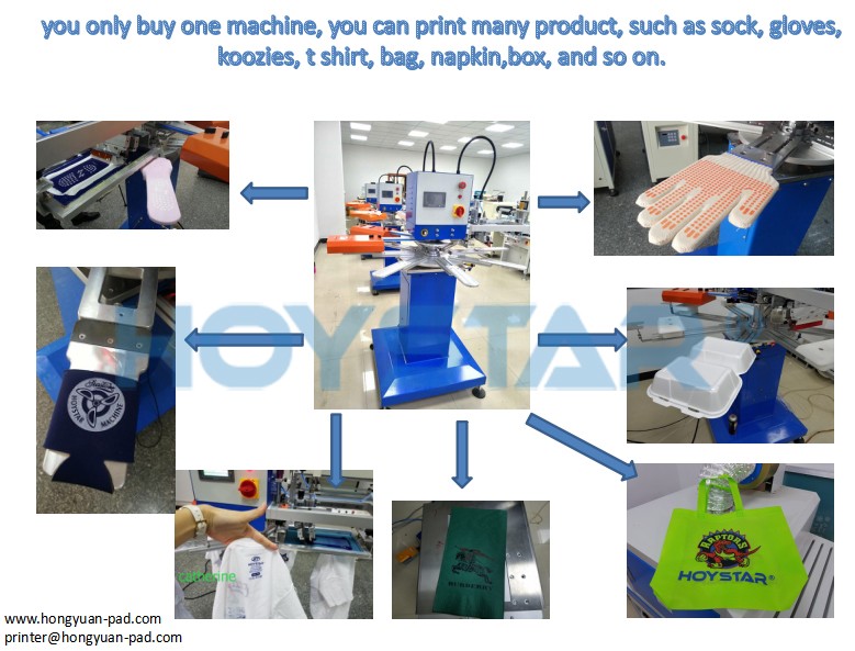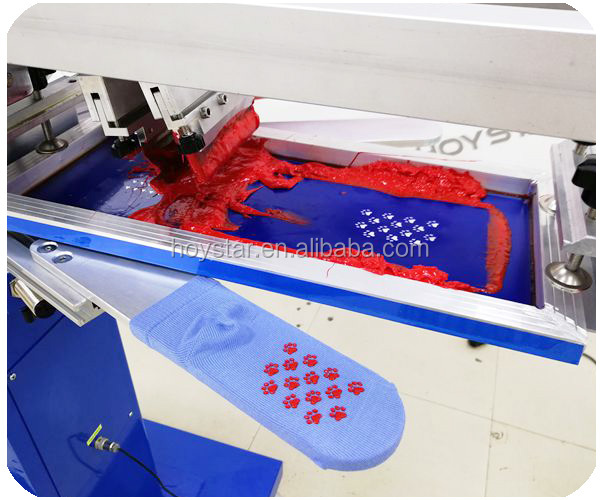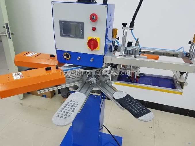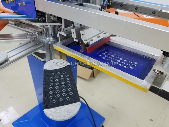 High-speed sock screen printing machine for textile and knitting industry, the speed can reach 1200PCS/Hr, it is suitable for printing clothing without labels, socks or labels, rotatable type, loading and unloading products is very convenient, many customers like it very much because of high quality and low price.