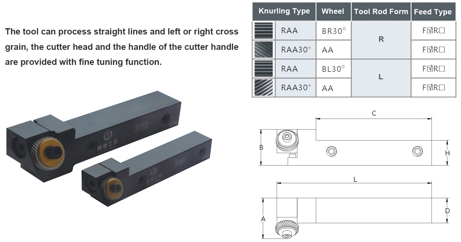 Knurling features: The knurling tool for turning the outer diameter can adjust the cutting angle, which can protect the precision of the machine tool, and the rigidity of the small machine tool is low. Applicable models: CNC lathes, automatic lathes. Multi-spindle lathes, Swiss automatic lathes, turning and milling machines.