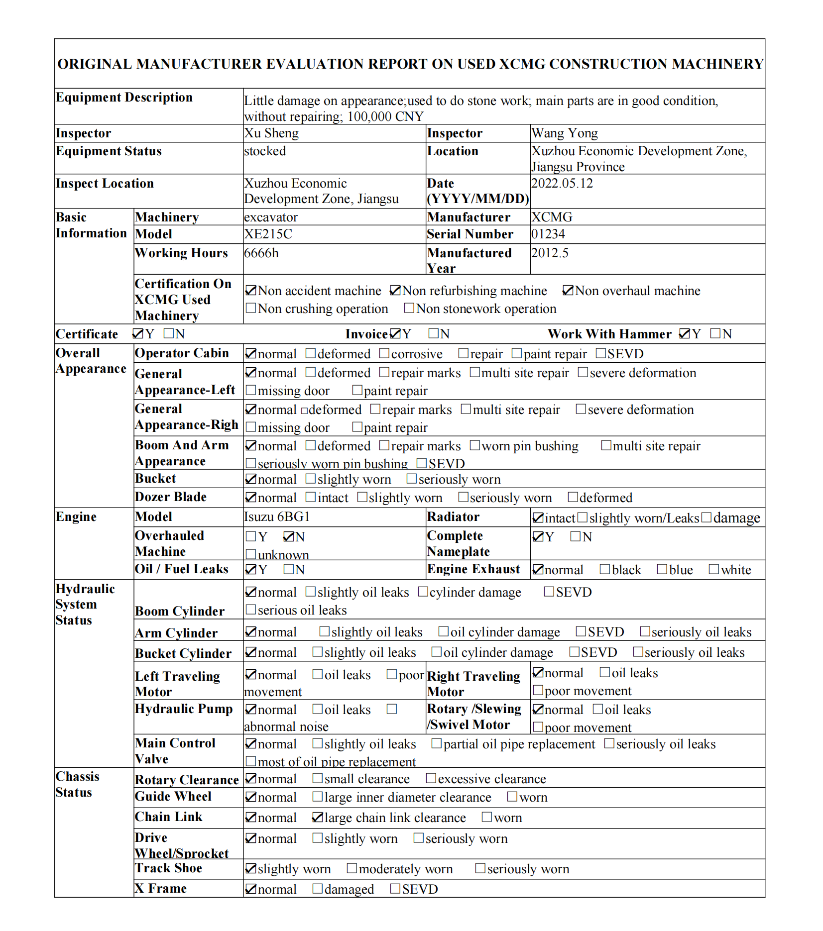 | Mechanical test report: | if | Hydraulic pump brand: | famous brand |