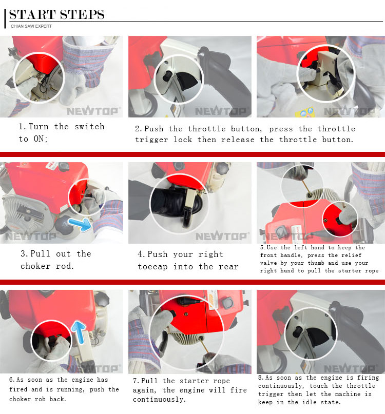 | feature: | 2 stroke, non-slip, forced air cooling, single cylinder, 105cc | chain: | Oregon/Carlton/Archer/China |