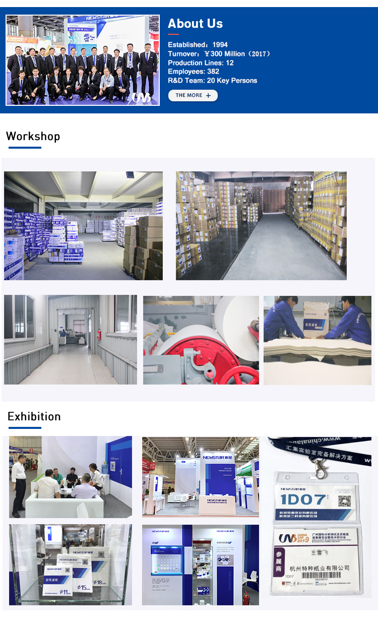 The company has 12 professional production lines and 5 divisions. We manufacture high quality filter paper for laboratory, qualitative filter paper, quantitative filter paper, lens cleaning paper, sugar and beer filter paper, crepe filter paper, chromatography paper, absorbent paper (absorbent paper), germination test paper (seed test paper), flower paper, oil filter paper , Universal indicator PH test paper, special indicator paper, chloride test paper, residual chlorine test paper, litmus paper (red, blue, neutral), Congo red paper, potassium iodide starch paper, cobalt chloride test paper, phenol red paper, methyl orange Test paper, PH daily test paper, methyl violet test paper, thymol blue test paper, lead acetate test paper, turmeric test paper, phenolphthalein test paper, saliva test paper, etc. In addition, we also have a full range of high-quality syringe filters.