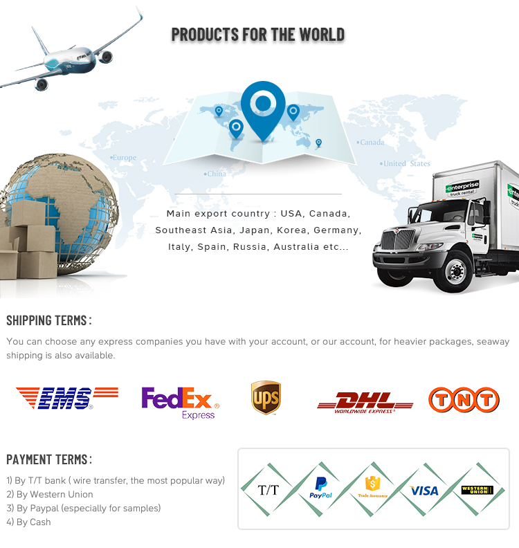 - Telegraphic Transfer (T/T), Western Union, Letter of Credit (L/C)