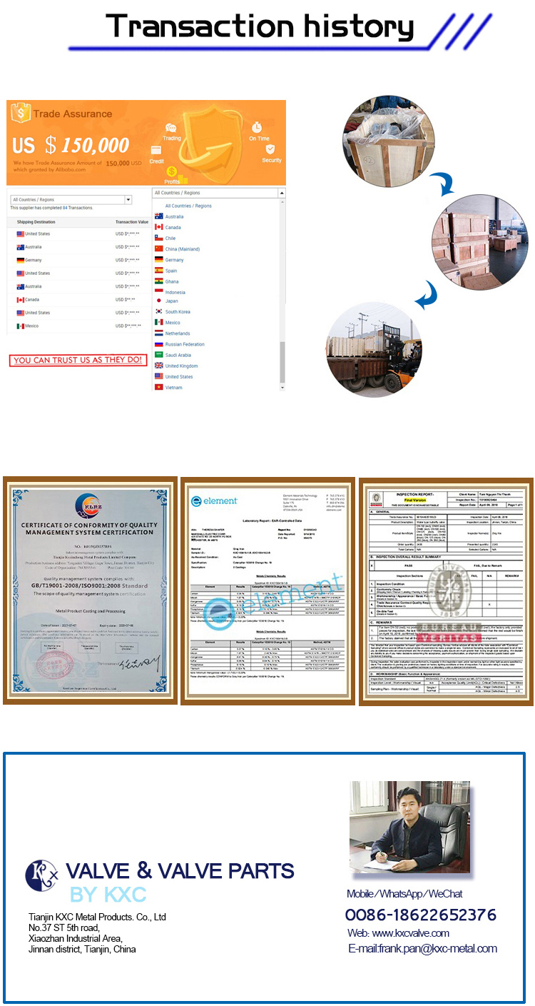 Tianjin Kangxincheng Metal Products Co., Ltd. was established in 2004. We have been working in the valve industry for 15 years. KXC METAL is a complete valve manufacturer with its own foundry, machine shop and assembly line. So we can control the overall quality by ourselves and guarantee the delivery time. Our main products are butterfly valves, gate valves, check valves and control valves. In addition, we also offer OEM production of VALVE PARTS, including valve bodies, discs, seats, stems and other spare parts. Looking forward to your inquiry and visit