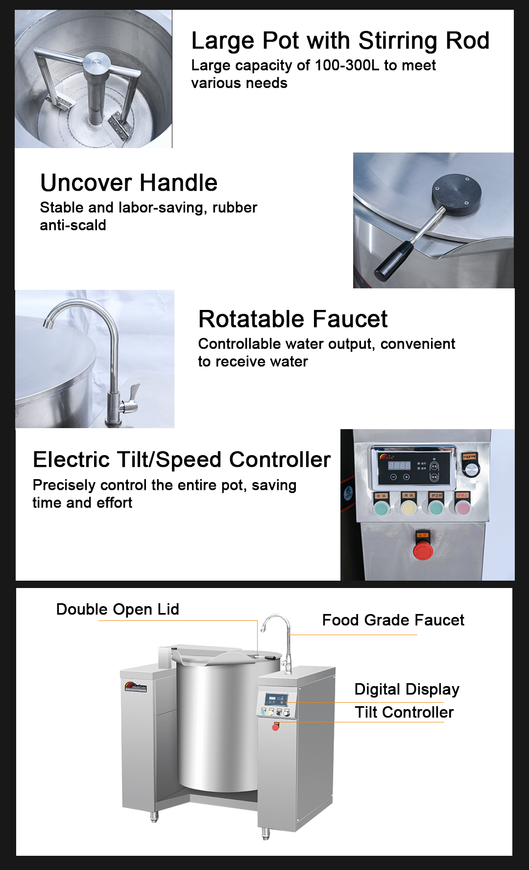 product name | 50/100/150/200/300/500 liters tilting open pot industrial cooking pot induction cooking pot | ||||