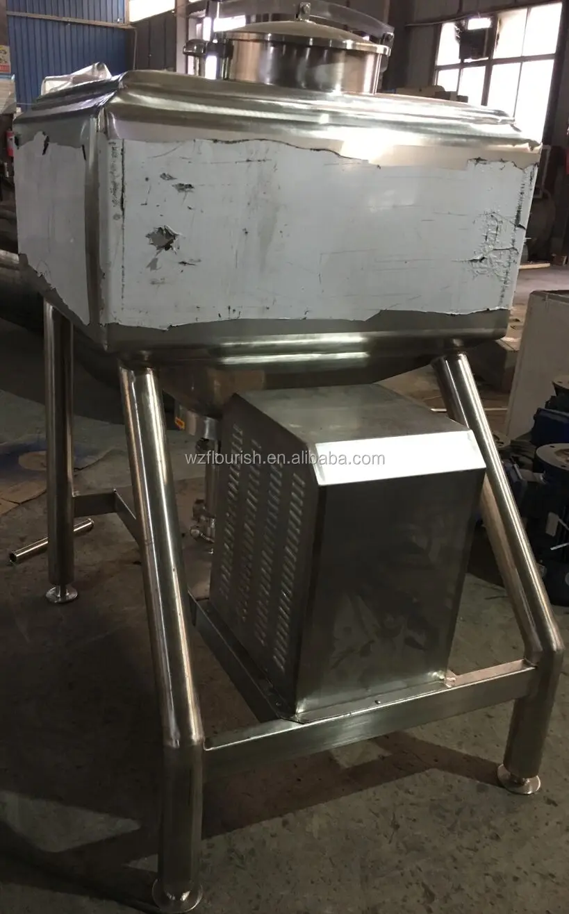 This square high shear emulsifying tank is to blend the materials efficiently under mixing, pressing and shearing force caused by the high-speed rotation of the impeller in the bottom, which is especially applicable for the mixture of sugar, starch, milk powder, egg powder products with the emulsifying agent, stabilizing agent and thickening agent which are usually used in the mixing flow of formula milk powder, acidophilus milk, various drinks, ice cream, egg roll and waffles. We have adopted R-arc transition regarding the structural design to guarantee there is no dead corner to influence the sanitation; Furthermore, the technical innovation has been carried out on the sealing structure for the mixing at the bottom to prolong the service life of the mechanic seal and bearing to the largest extent, and it has also saved the service cost for the clients.
