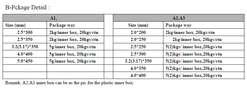 | Advantage 2: | Small Spatter; | Diameter: | 2.5mm/3.2mm/4.0mm/5.0mm; |