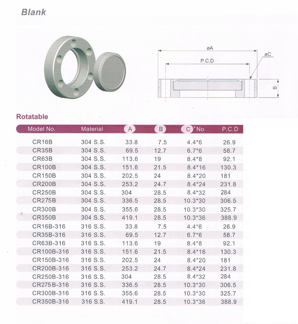 | Connection method: | Gasket and screw connection | model: | CF63 blind |