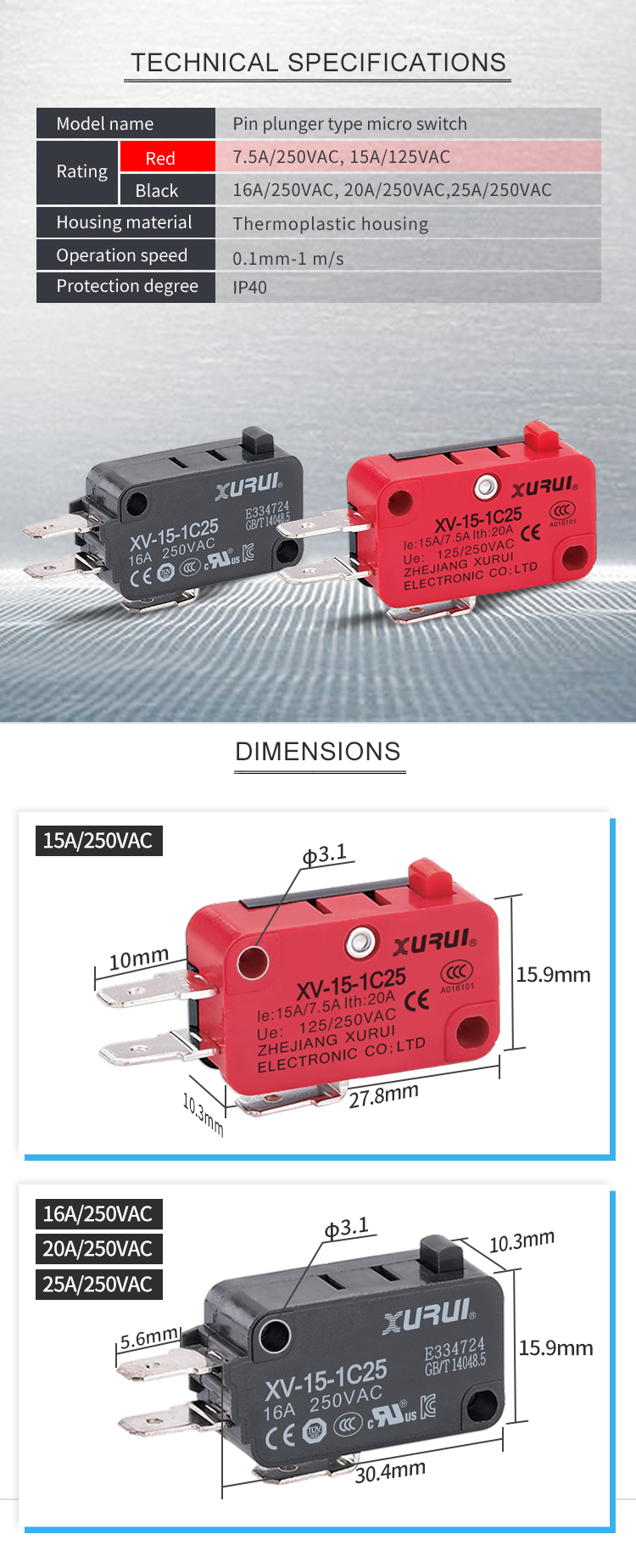 | Xu Rui Electronics Co., Ltd.Founded in 2002, mainly engaged in research, production and salesMicro Switch,limit switch,solid state relay,foot switch,Toggle Switches,proximity switchand many more |