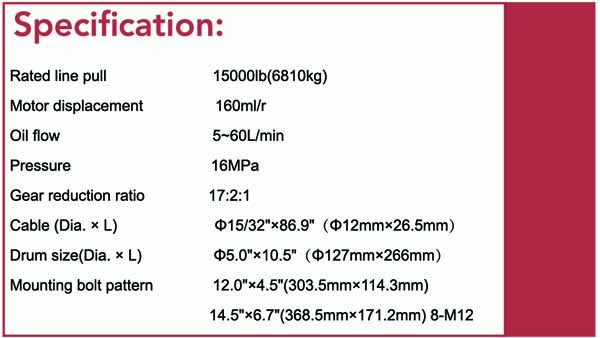 | place of origin; place of origin: | Shandong China | motor: | winch motor |
