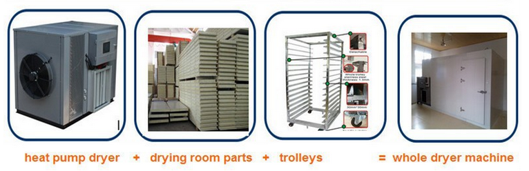| One JK03RD dryer + drying room | 300Kg/batch | 3300*1900*2200mm | |