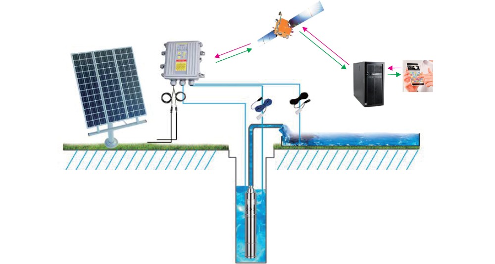 A float switch can be installed in the water tower to control the operation of the pump. And install a low-level probe in the well to detect the well water, so that the pump stops when there is no water. The figure below is a typical schematic diagram of a solar water pump system, including the main components.