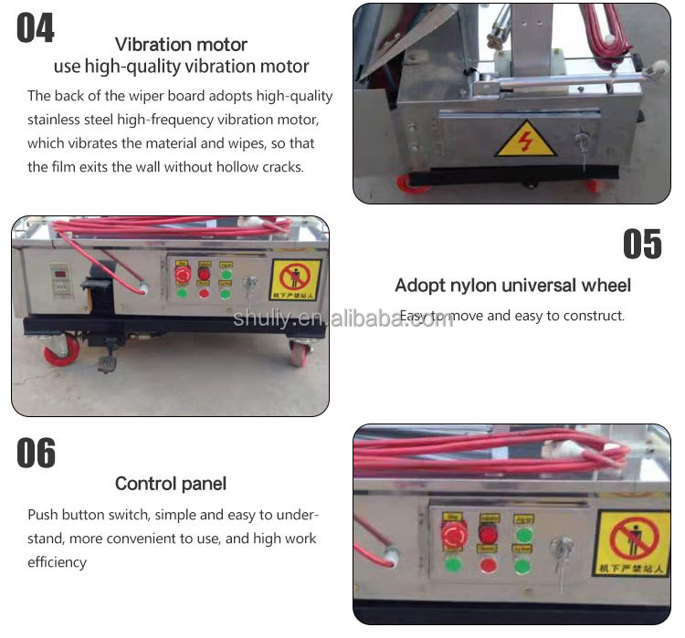 5. Our wall plastering machine is equivalent to the workload of 10 craftsmen, saving the cost of building shelves, small size, light weight, and extremely convenient operation;