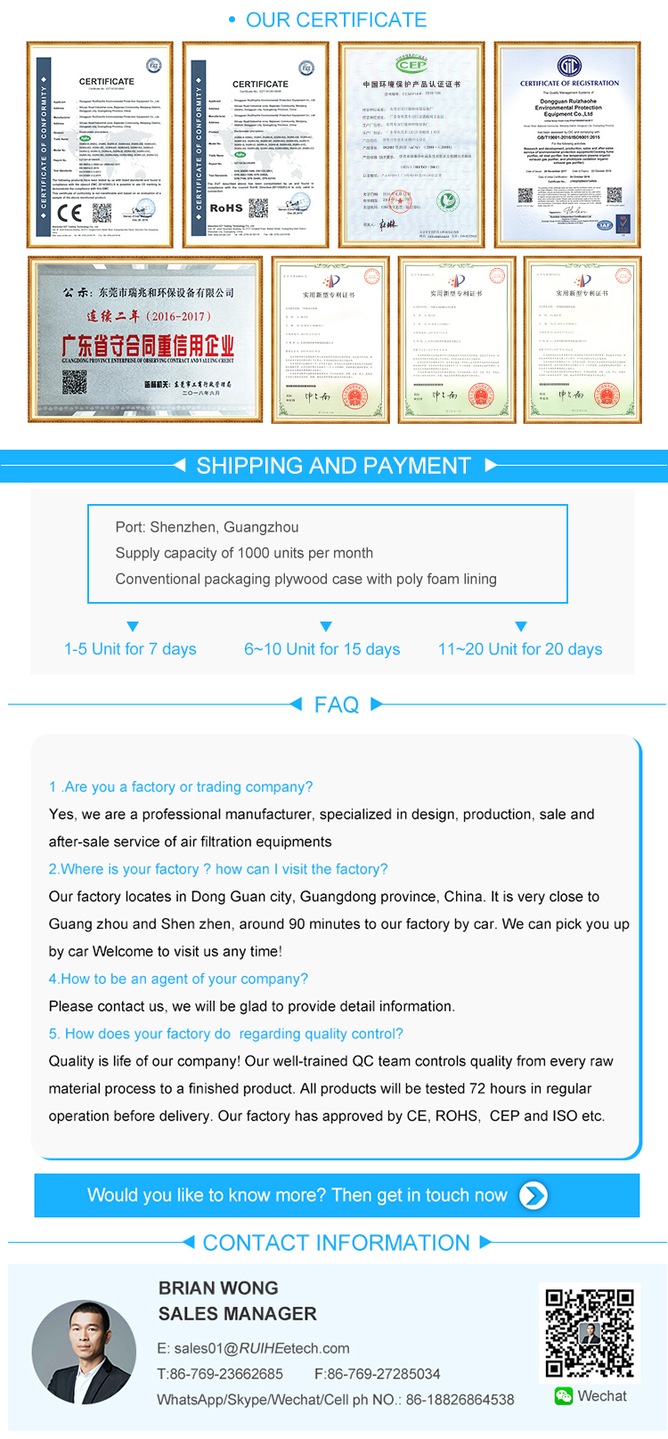 Dongguan Ruizhaohe Environmental Protection Equipment Co., Ltd. is one of the leading manufacturers in China, specializing in the production of commercial and industrial air pollution control equipment.