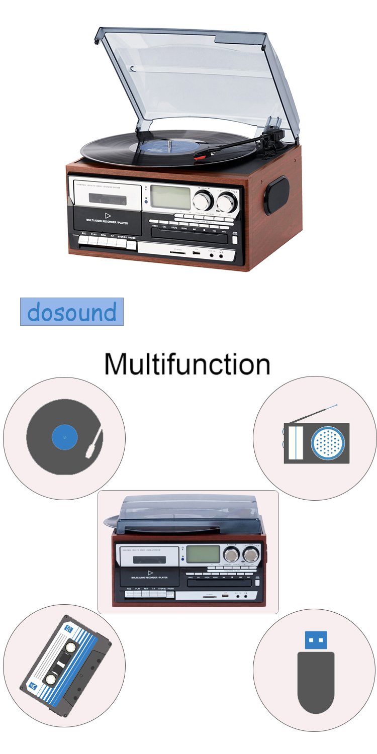 | Function: | LP, CD, cassette, AM/FM radio, USB/SD playback and encoding | Material: | MDF+PVC |