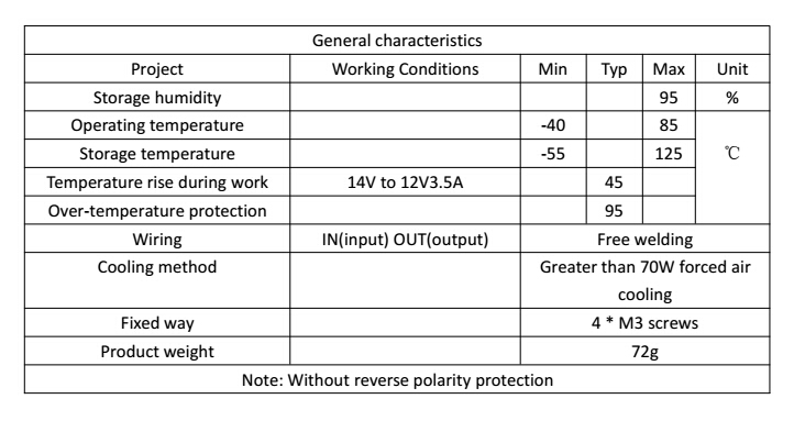 Input adjustable under voltage protection, over temperature protection, short circuit protection.