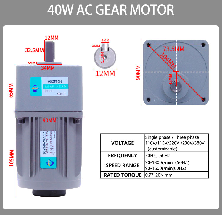 Reversible 25w 40w 140w 140watt 180w 110volt 220volt 220v 380v Single Phase Low Speed AC Motor AC Pinion Motor 60rpm 1350rpm