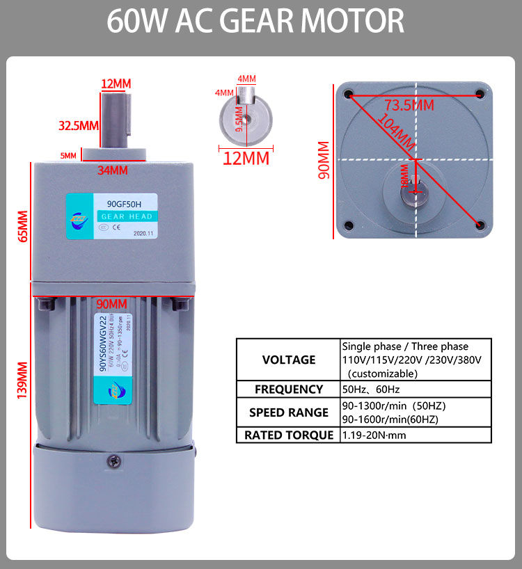 | Motor diameter: | 60/70/80/90/104 mm | AC voltage: | 110V220V380V415V |