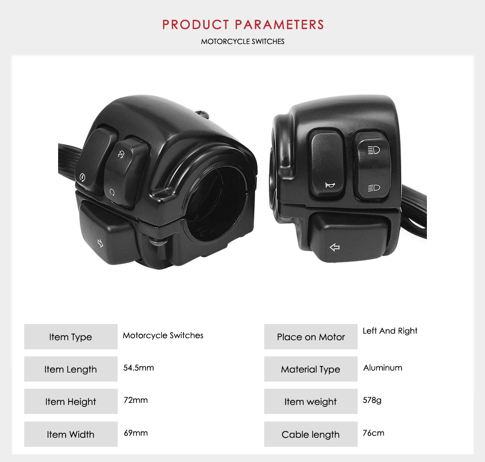 Package Included:1 x Left Motorcycle Switch + 1 x Right Motorcycle Switch