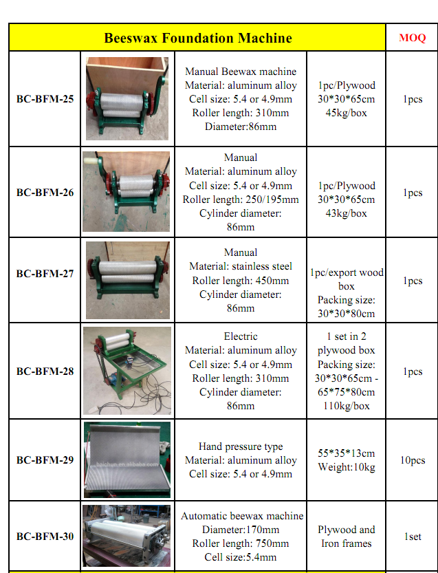 Beeswax Comb Basic Machine Specifications