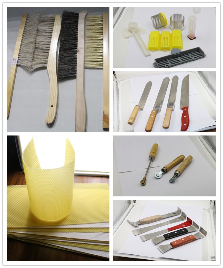 Beehive, bee smoker, beeswax base sheet, honey door, honey extractor, hive tools, honey knife and other beekeeping tools, bee protective clothing.