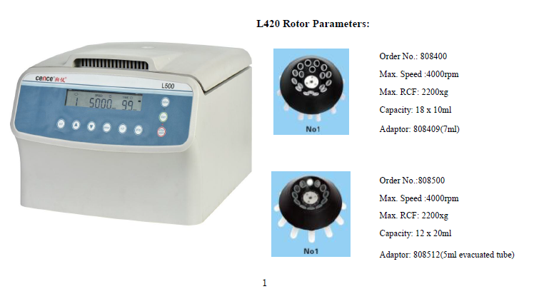 | Max RCF: | 4030xg | Name: | L500/ L500-A Centrifuge |